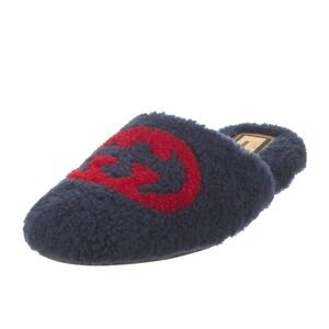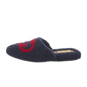 Gucci returns to the slipper to refresh the footwear style that has become synonymous with the Italian house. This navy and red iteration is made from merino and detailed with the signature Interlocking G motif.