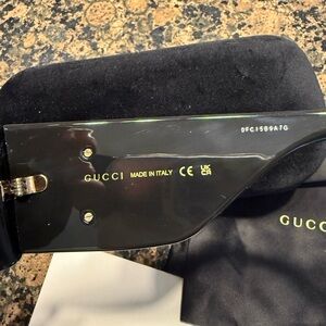 Sophisticated black sunglasses by Gucci. Perfect for stylish outings. In style still in stores. 100% authentic & new! Retail $425 plus tax. Offers accepted. No low ball offers please
