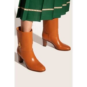Gucci Elizabeth Half Horsebit Cognac Classic Heeled Ankle Boot 38.5