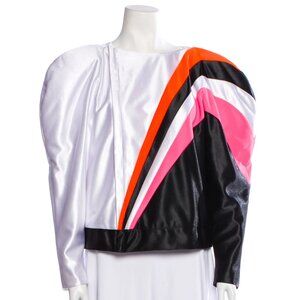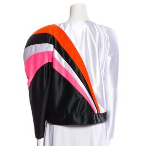 From the Gucci x Elton John limited edition collection. White, black, orange, and pink striped zip jacket.