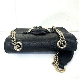 Gucci Emily Chain Crossbody Flap Horse Bit Bag Guccissima Black Leather Mini