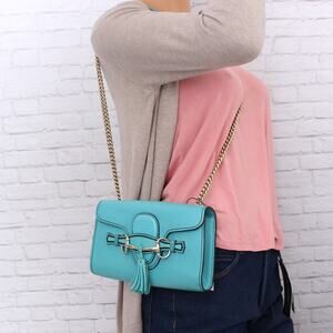 Gucci Emily Turquoise Calfskin Leather Crossbody Handbag Purse