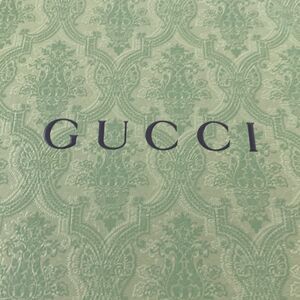 TAGS: gucci gift box, green embossed gucci box, large gucci box with tissue, authentic designer packaging, luxury gift wrap, shallow gucci box, gucci handbag box, closet storage box, fashion shoot prop, gucci special edition packaging
