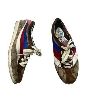 Gucci Falacer Monogram Leather Trainers Size EU 37
