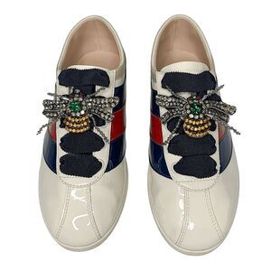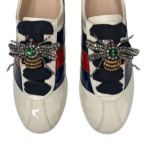 Gucci Falacer Patent Leather Sneakers 38 White Red Blue Bee Crystal Low Top