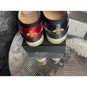 Rhinestones stone in the sole. Gold bee logo on the back. Soft leather and good used condition.
