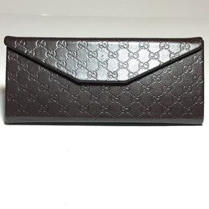 Gucci Faux Leather Embossed Sunglass/Eyeglass Triangle Case Brown W/ Cloth EUC