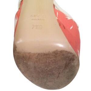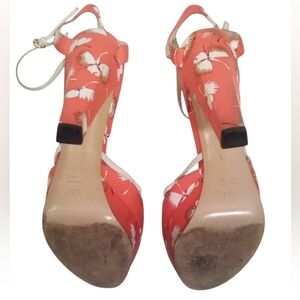 Gucci Floral Bow Peep Toe Ankle Strap Heels Silk Platform 5" Heels Size 7.5