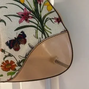 Gucci Floral Canvas Shoulder Bag with Tan Leather and Gold Hardware