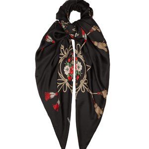 Gucci Floral and Tassel-print Silk Shawl in Black