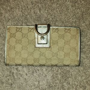 Gucci Fold Purse Lona Wallet GG Black Canvas Leather Italy Unisex EUC
