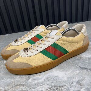 Gucci G 74 Web GG Sneakers Bees Yellow Leather Suede 10.5 G or 11 US 44.5 EUR