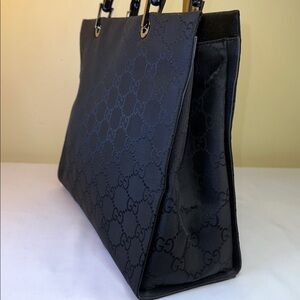 Gucci GG Black Canvas Bamboo Handle Shopper Tote