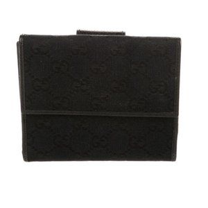 Gucci GG Black Canvas Compact Wallet Leather Lined Gucci D-Ring Gold Hardware