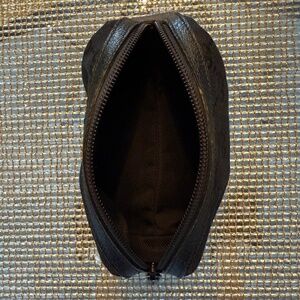Rare, refined, and ready to elevate your essentials. This authentic Gucci GG pouch is crafted from black monogram canvas with leather trim, featuring a smooth zip closure and a clean, structured interior.