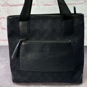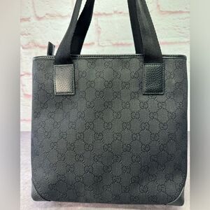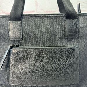Authentic Gucci GG Black Denim Front Pocket Tote