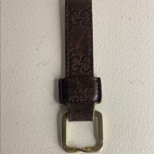 This Gucci GG Brown Leather and Goldtone Slip Ring Key Ring is in excellent preowned condition.