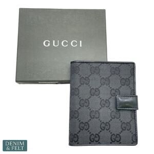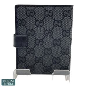 Gucci GG Canvas Black Leather Agenda Cover Planner Organizer w/ Box Authentic