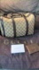 Stylish Gucci duffel bag with iconic pattern. Features rich brown accents. Ideal for travel or daily use. A Preowned bag with mild signs of usage.