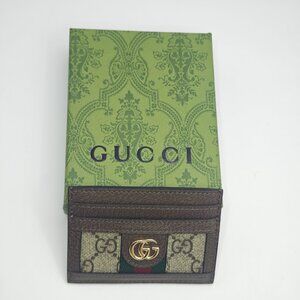 Organize your cards with this Gucci GG canvas organizer. It’s design combines the classic GG Supreme canvas with elegant leather trim, highlighted by the vibrant Web stripe and the prominent Interlocking G logo, offering both functionality and flair.