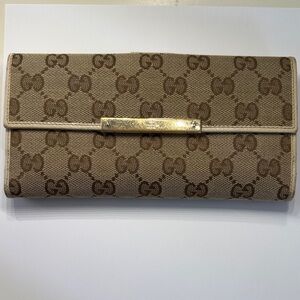 Chic Gucci wallet featuring iconic GG canvas. Stylish and functional for daily use.This item is pre-loved in good condition. Please see photos and ask questions