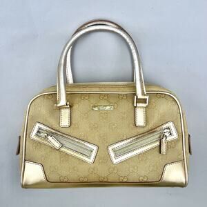 Gucci GG Canvas Handbag Bowler Satchel Tote Bag Gold Metallic Top Handle Bag
