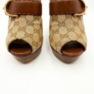 Gucci GG Canvas Horsebit Clogs Supreme Tan Wooden Mules EU 38 US 8