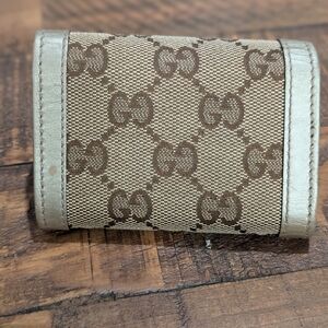 Add a touch of luxury to your everyday essentials with this authentic Gucci GG canvas key case. Crafted from Gucci’s signature monogram canvas with light gold-tone leather trim, this stylish key holder keeps your keys organized while showcasing an elegant, classic design.
