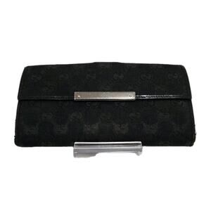 Gucci GG Canvas Leather Black Logo Plate Long Wallet Flap Snap