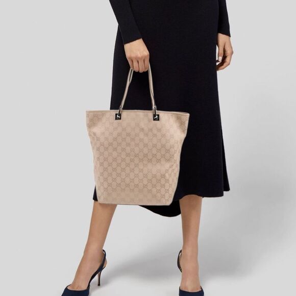 Gucci- GG Canvas Leather-Trimmed Tote - Vintage