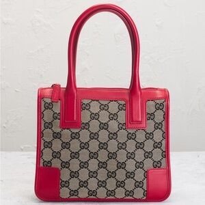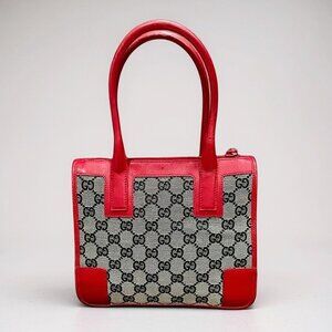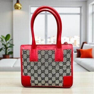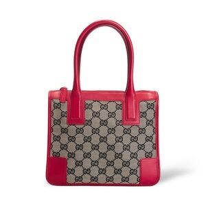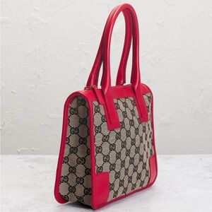Gucci GG Canvas Tote Bag – Red Leather Trim | Vintage Designer Shoulder Bag