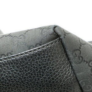 Gucci GG Canvas Tote Shoulder Bag Black Leather