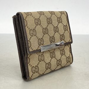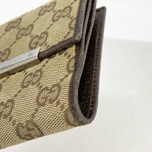 Gucci GG Canvas Wallet 112664 Brown Canvas with Silver Hardware Women's