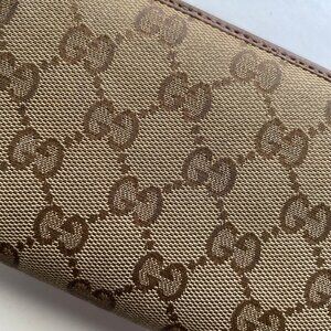 Authentic Gucci Zippy Wallet in good pre-loved condition. Some wear on corners and slight discolorations on canvas. Zipper still works great.
