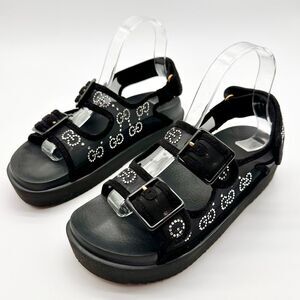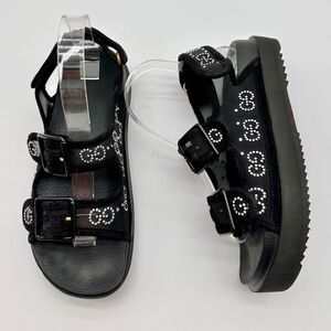 Gucci GG Crystal Embellished Platform Mash Dad Black Flat Sandals EU 38 US 8