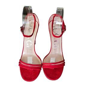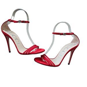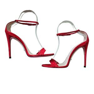 Gucci GG Crystal Strappy Stiletto Heel Sandal Size 37.5 US 7.5 Red Suede Silver