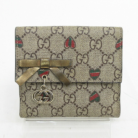 Gucci GG Double Hook Wallet Ribbon Heart Beige