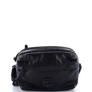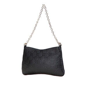 Gucci GG Emblem Chain Shoulder Bag Black Leather