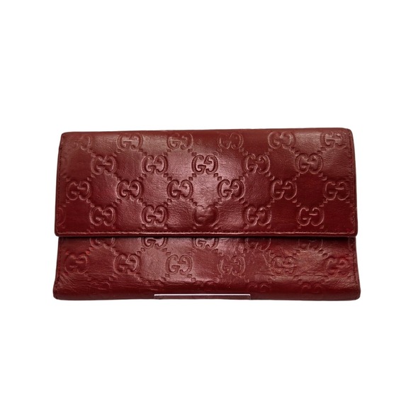 Gucci GG Embossed Continental Wallet Snap Closure Red Leather Authentic