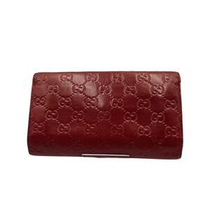 Keywords: Gucci wallet, GG embossed wallet, continental wallet, red leather wallet, snap closure wallet, designer wallet, luxury wallet, Gucci accessory, card holder wallet, billfold wallet, zippered coin pocket, authentic Gucci, Gucci, leather wallet