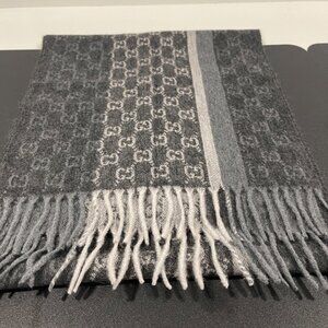 Made from soft cashmere, ideal for cold weather. Features the iconic "GG" monogram jacquard knit throughout, with fringed ends. Can be worn as a classic ddcarf or draped around the shoulders as a shawl. Made in Italy. This is a preloved item in very good condition. Please take the time to look at photos for condition. Please reach out for additional information.