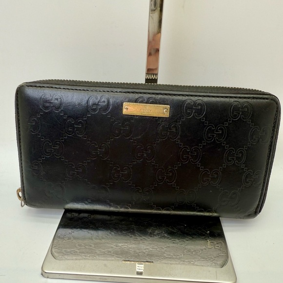🖤 Gucci GG Guccissima Black Leather Zip-Around Wallet (Authenticated)