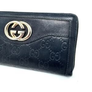 Classic, timeless, and instantly recognizable — this authentic Gucci Guccissima Monogram wallet is crafted in supple black leather with the signature interlocking GG hardware at the front. The iconic embossed GG monogram runs throughout, giving it that unmistakable Gucci luxury feel.
