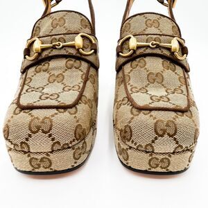 Gucci GG Horsebit Platform Slingback Square Toe Pumps New 37 US 7