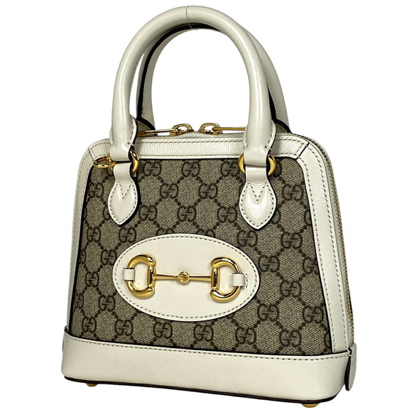 Gucci GG Horsebit Shoulder Bag Canvas Beige White Includes a Certificate of Authenticity!