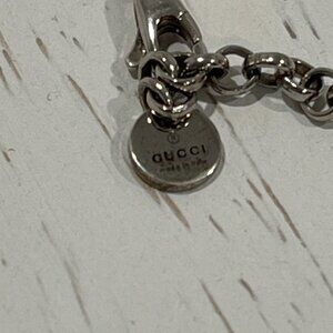 A textured chain with interlocking G pendant in .925. Sterling silver with engraved pattern. This is a preloved item in very good overall condition. Take a moment to look closely at photos. Made in Italy.