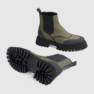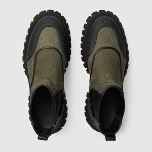 Gucci GG Jacquard Canvas Ankle Chelsea Boots Green Black 10.5/US 11 NIB $1,150