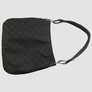 Gucci GG Jacquard Shoulder Bag Black Silver Hardware COA Leather Trim