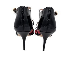 Gucci GG Jerry sandals, Gucci black patent leather heels, Gucci pointed toe strappy sandals, Gucci cage heels, Gucci designer shoes size 38.5, Gucci US 8.5 women’s heels, Gucci gold accent sandals, Gucci luxury party shoes, Gucci high heel sandals black, Gucci authentic pre-owned shoes
