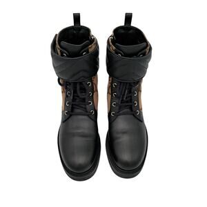 Gucci GG Jumbo Monogram Canvas Combat Boot Size 40 US 10 Black Leather Lace Up